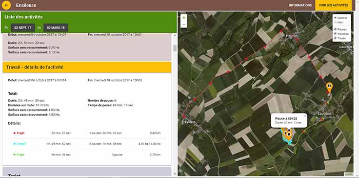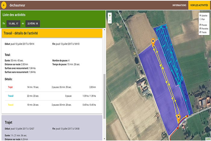 Distance parcourue, Nombre d'hectares réalisés, Temps réalisé...